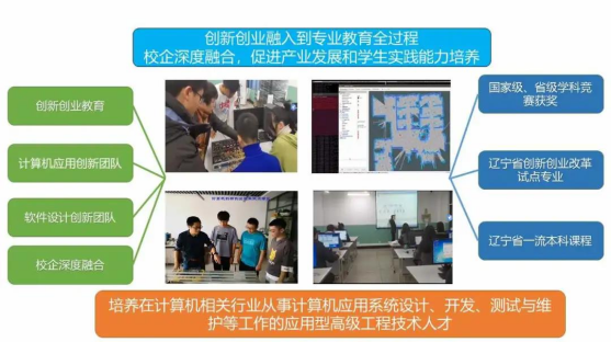 •新创业融入到专业教育全过程。2018年计算机科学与技术专业被评为辽宁省教育厅评为“辽宁省创新创业改革试点专业”。