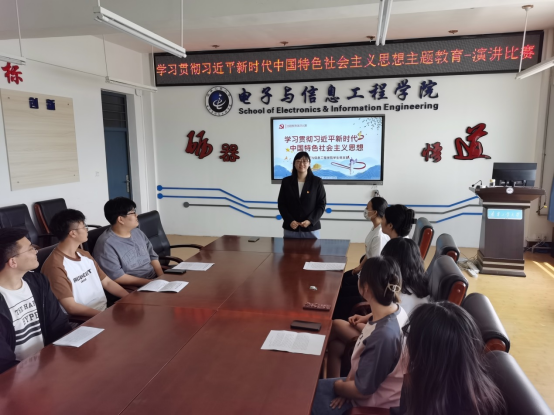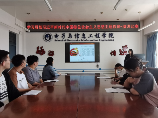 学生党支部在五号教学楼509会议室举办学习贯彻习近平新时代中国特色社会主义思想主题教育的演讲比赛。学生党支部书记陈爽老师以及党支部学生党员参与了此次活动。