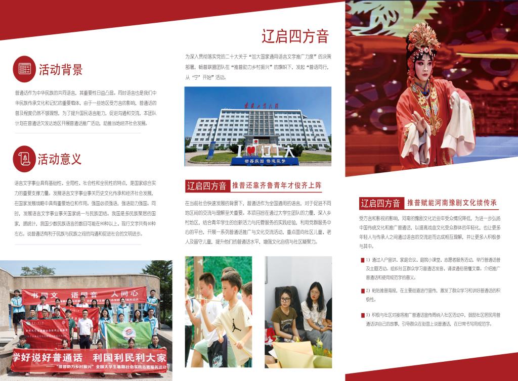 这个夏天,来自畅普联盟团队的12位青年将分别前往贵州、陕西、河南、山东四省,围绕党史学习教育、国家通用语言文字调研、国家通用语言文字教育、普通话培训等方面开展相关活动,积极推广普通话,助力乡村振兴,传承文化精髓。