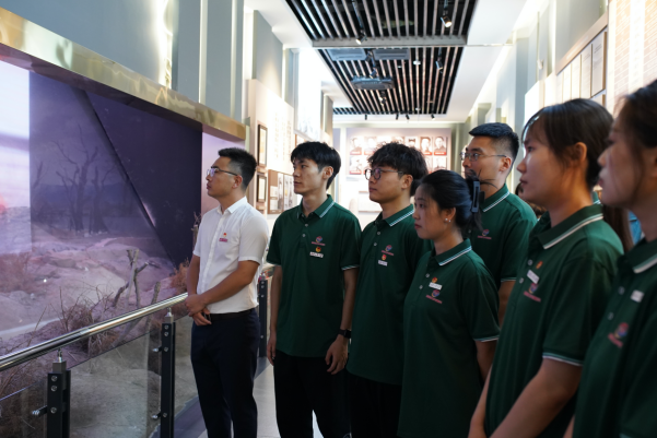 启程仪式上,畅普联盟团队首站来到配水池战斗遗址陈列馆。这里不仅是历史的见证,更是精神的传承。讲解员以标准流利的普通话引领着团队成员深入历史的脉络,普通话在这里,不仅仅是一种沟通的工具,它更是一座连接过去与现在,传递历史与文化的坚实桥梁。在陈列馆内,一幅幅历史图画映入眼帘,全息投影的历史画面更是将大家带回到了那个硝烟弥漫的年代,使队员们仿佛亲眼见证了革命先烈们为民族独立和人民幸福而进行的英勇斗争。