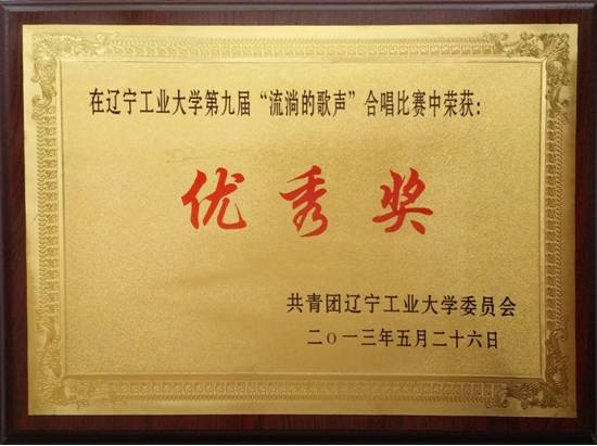 第九届“流淌的歌声”合唱比赛优秀奖