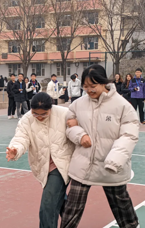 赛场上,运动项目趣味十足,参赛选手们尽情展现活力与风采。无论是考验团队默契的两人三足,还是技巧十足的简易保龄球,亦或是速度与激情并存的折返跑,都点燃了同学们的运动热情。啦啦队成员们也为各自支持的队伍加油鼓劲,现场呐喊声、欢呼声此起彼伏,气氛热烈非凡。
