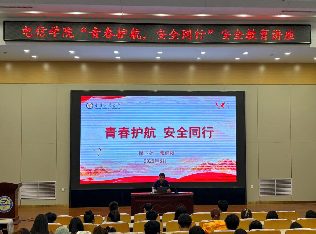 联合校保卫处在5号楼201室举办了“青春护航,安全同行”安全教育讲座。本次讲座由保卫处副处长郭道阳主讲,院党委副书记兼副院长张超、辅导室全体成员及部分本科生代表参加了本次活动。