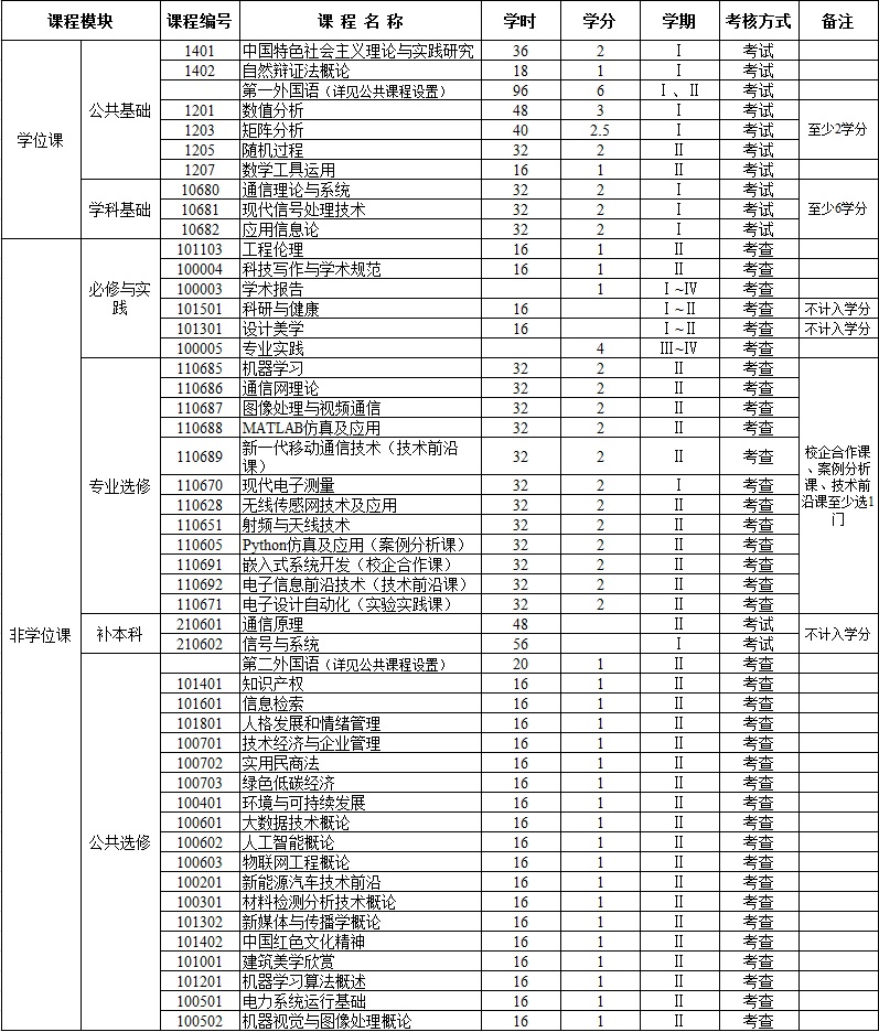 电子信息(新一代电子信息技术领域)专业学位硕士研究生研究方向及课程设置(非全日制)